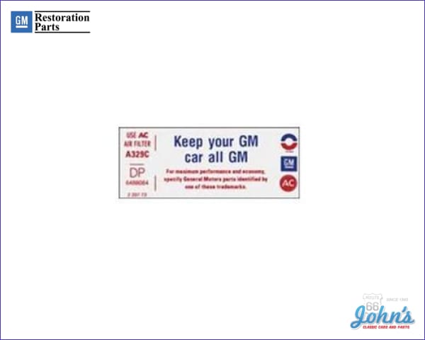 Air Cleaner Service Instructions Decal, 350. "Keep your GM car all GM"
